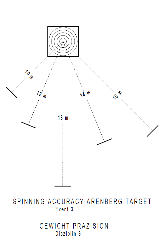 Gewertet wird der weiteste von drei Würfen. Für jeden Wurf gilt eine Zeitbegrenzung von 1min.